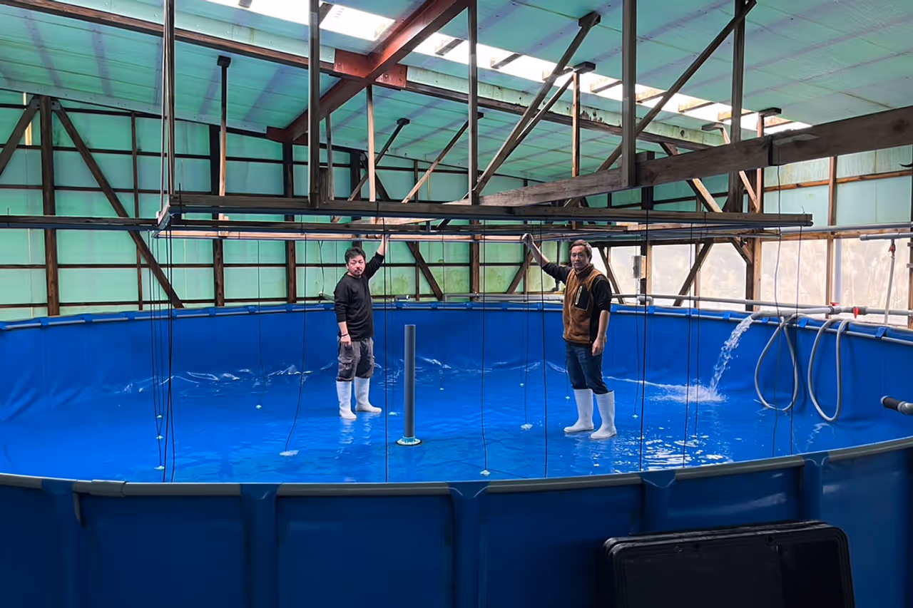 シナジーブリーディングで生まれた稚海老を親エビ候補になるまで育成しました。今日、新たなプールを立ち上げて立派な親エビになるまで育て始めます。